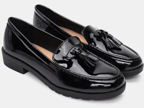 Μοκασίνια με Τρακτερωτή Σόλα & Διακοσμητική Τόκα - Μαύρο-Λουστρίνι