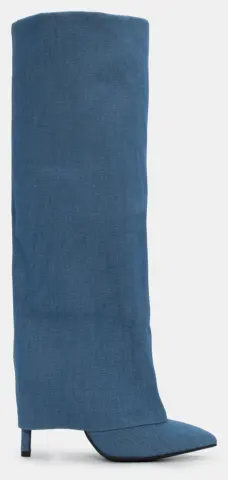 Μπότες Μυτερές με Εφέ Αναδιπλούμενης Φάσας & Διακοσμητικό Λουλούδι - Μαύρο