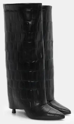Μπότες Μυτερές με Εφέ Αναδιπλούμενης Φάσας & Διακοσμητικό Λουράκι - Μαύρο